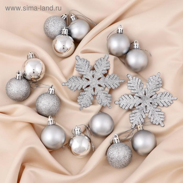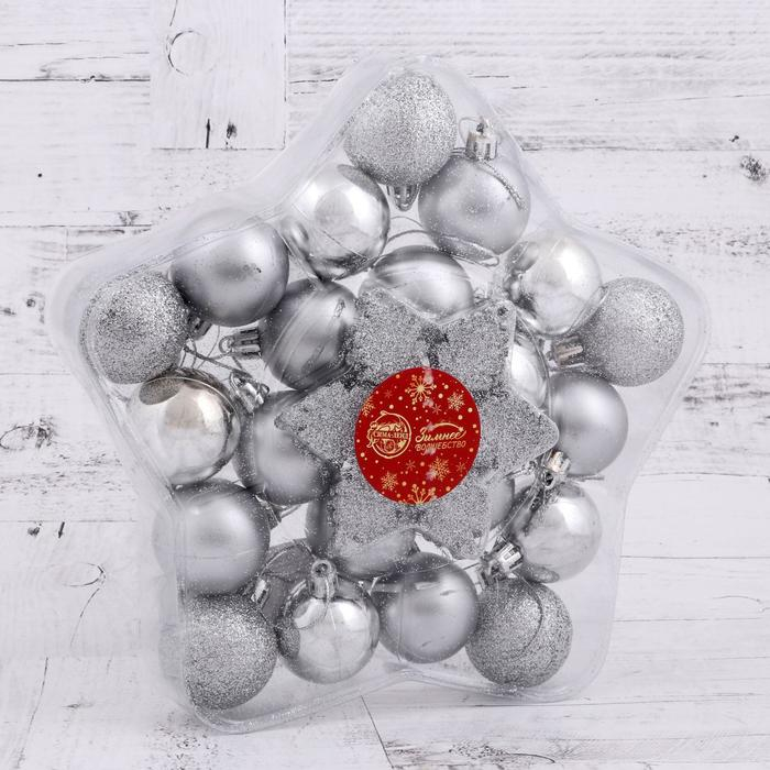Набор украшений пластик 24 шт "Снежинка" серебро