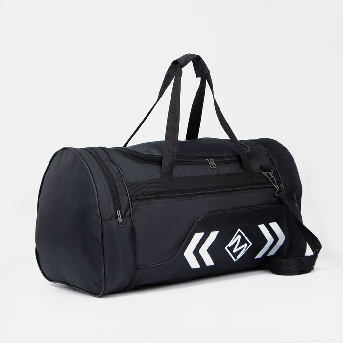 Сумка спортивная на молнии, 3 наружных кармана, длинный ремень, большой размер, цвет чёрный