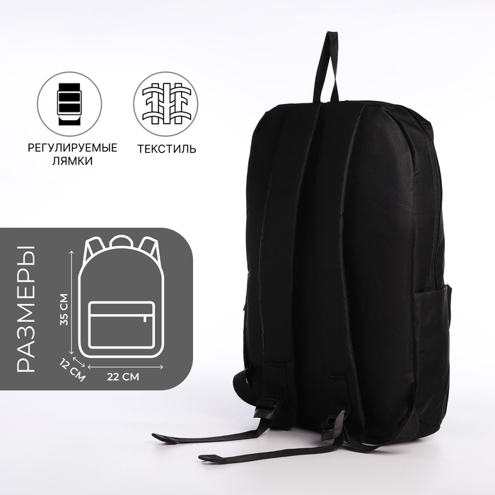 Рюкзак молодёжный на молнии, водонепроницаемый, 3 наружных кармана, цвет чёрный