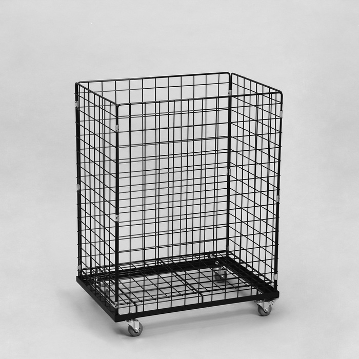 Корзина-накопитель складная, на колесах, 1 полка, 60×40×80 см, цвет чёрный