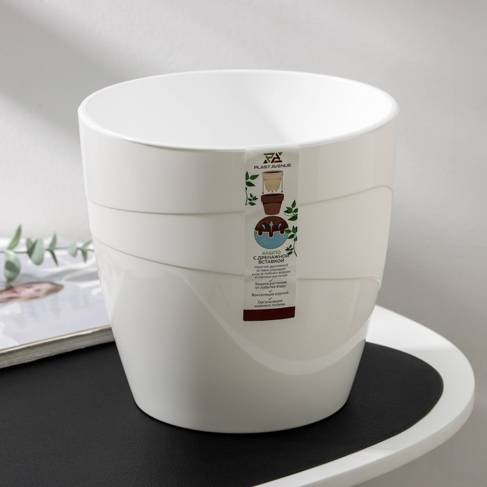 Кашпо для цветов со вставкой «Грация», 4.5 л, белое