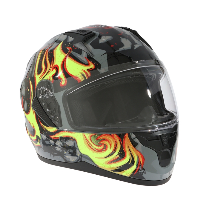 Прогрессивная вентиляция с регулировками уровня обдува. Ползунки для удобного подъема визора без контакта со стеклом. Внутренняя съемная подкладка выполнена из качественных материалов и не имеет резких, ярко выраженных запахов. Шлем изготовлен из качественного ABS пластика, который в свою очередь обладает долговечностью, высокой механической прочностью.