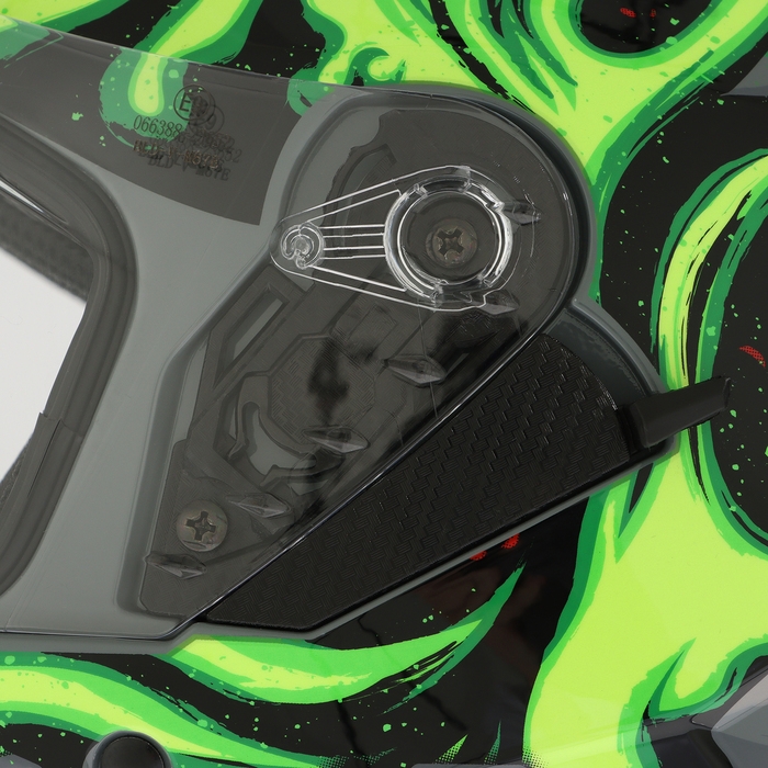 Прогрессивная вентиляция с регулировками уровня обдува. Ползунки для удобного подъема визора без контакта со стеклом. Внутренняя съемная подкладка выполнена из качественных материалов и не имеет резких, ярко выраженных запахов. Шлем изготовлен из качественного ABS пластика, который в свою очередь обладает долговечностью, высокой механической прочностью.