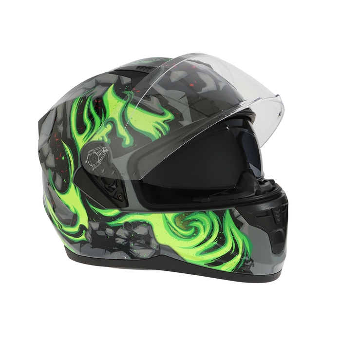 Шлем интеграл с двумя визорами, размер XL (60-61), модель BLD-M67E, черно-зеленый