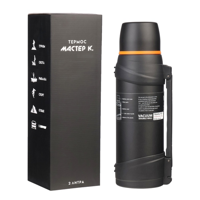 Термос, 2 л, Тропа "Мастер К", с кружкой, сохраняет тепло до 12 ч