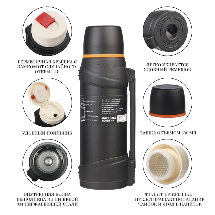 С дополнительной ёмкостью, С кнопкой, С ремнём, С ситом, Складная ручка