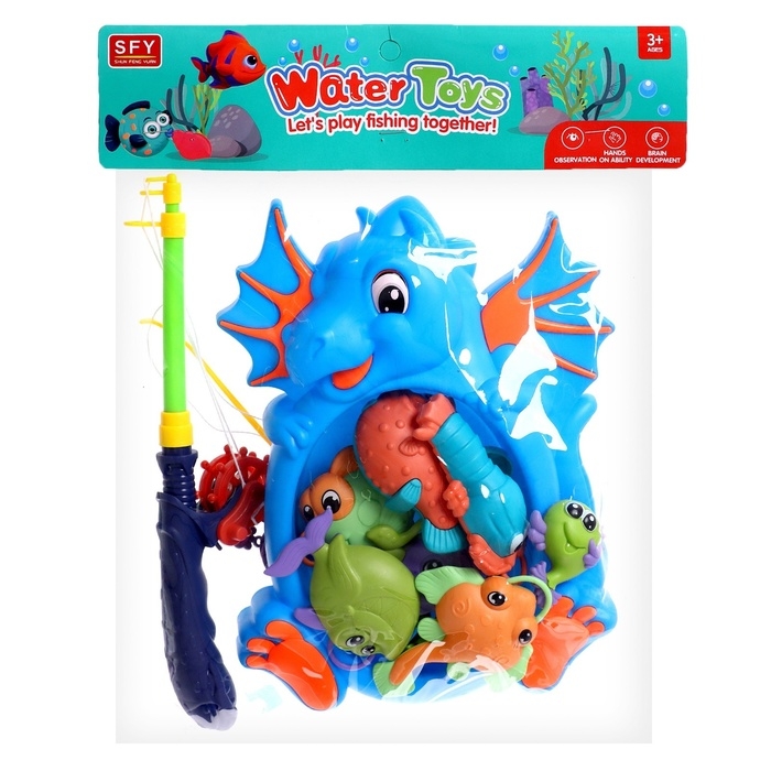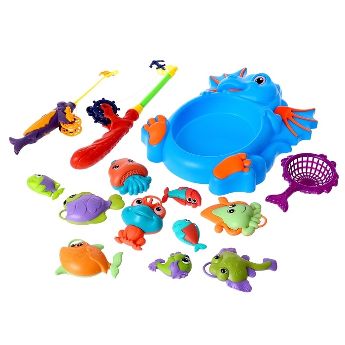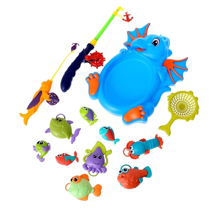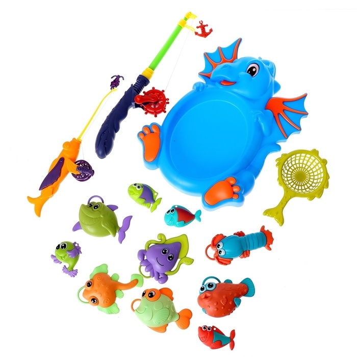 Рыбалка «Морской дракон», 10 рыбок, 2 удочки, сачок, цвета МИКС