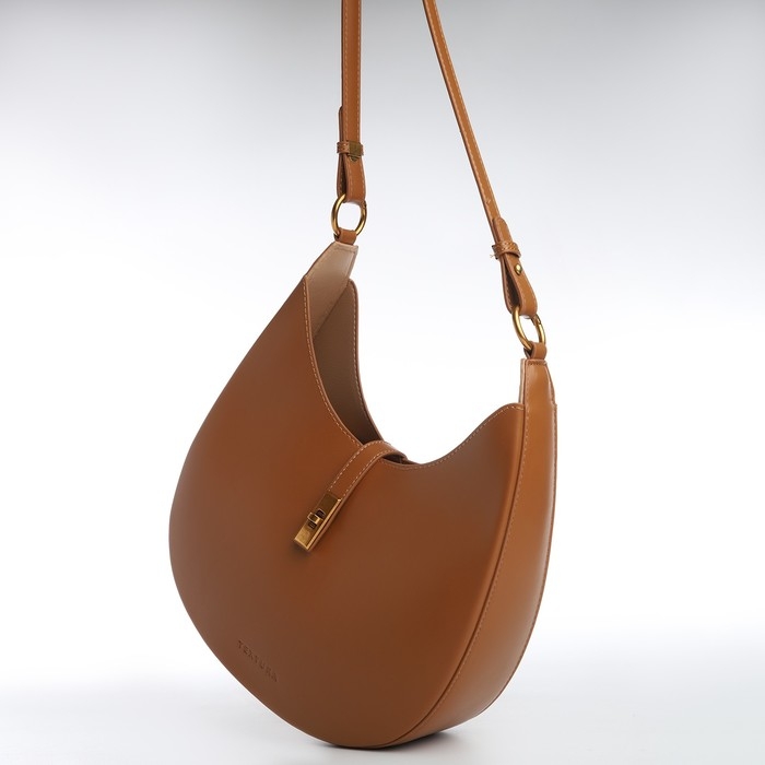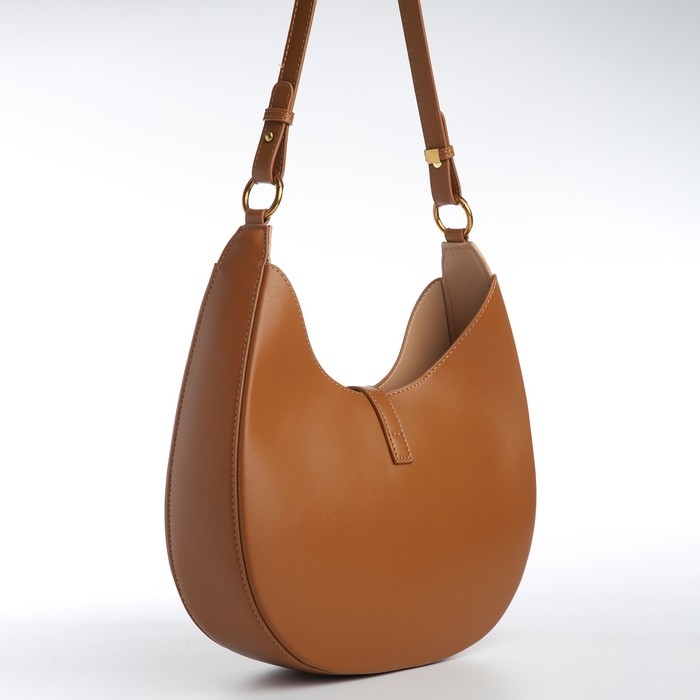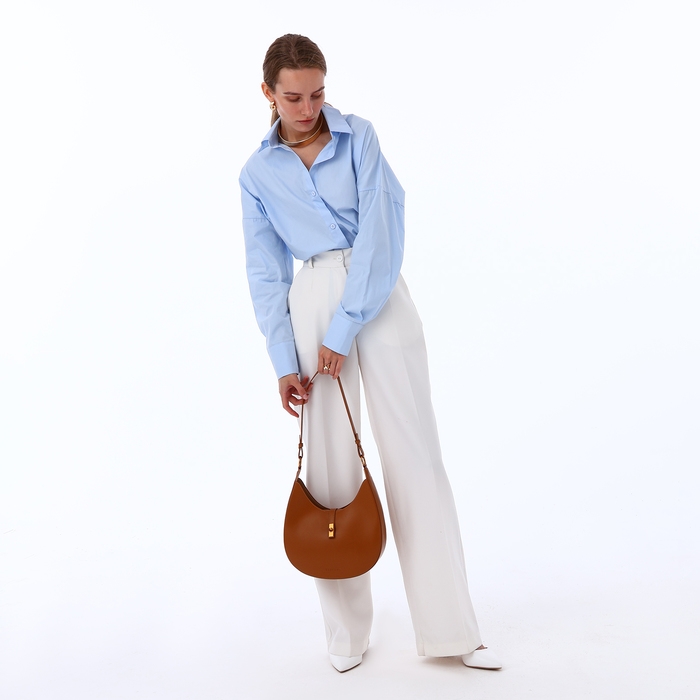 Эта сумка выполнена из качественной искусственной кожи и представлена в универсальном коричневом цвете, который легко впишется в любой образ.