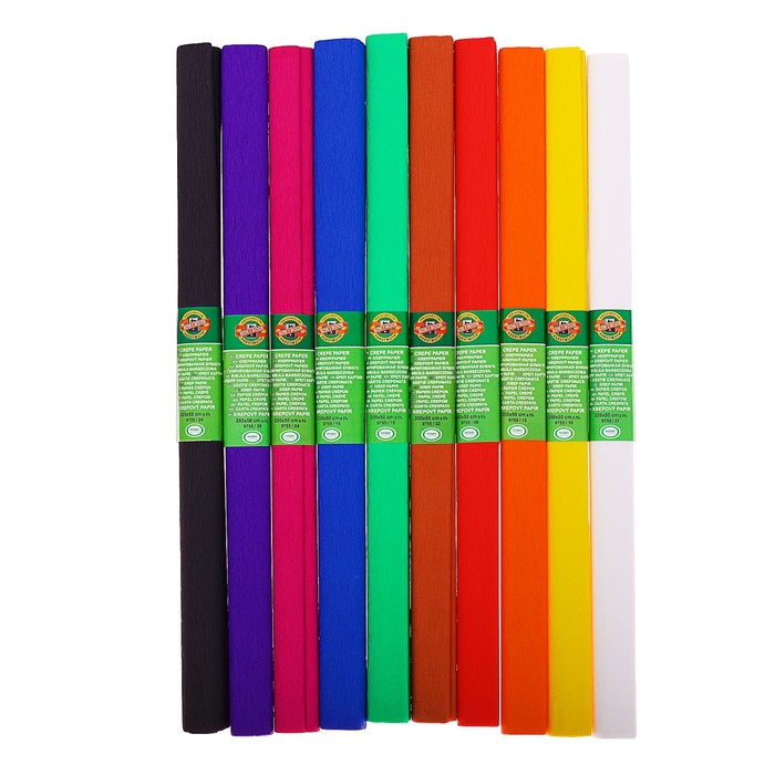 Набор бумаги креповой поделочной 10 штук, Koh-I-Noor, 50 х 200 см, плотность 30 г/м2
