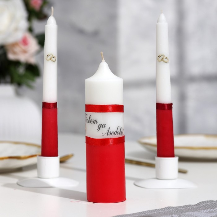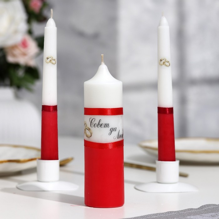 Набор свадебных свечей "Совет да любовь" красный: родительские 1,8х17,5; очаг 4х13,5