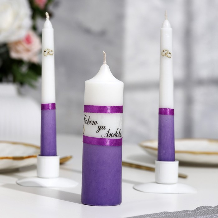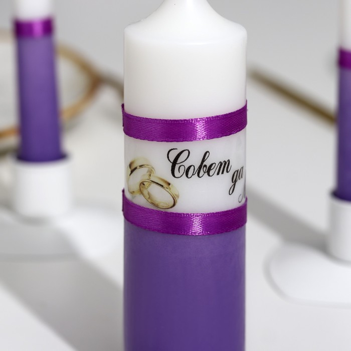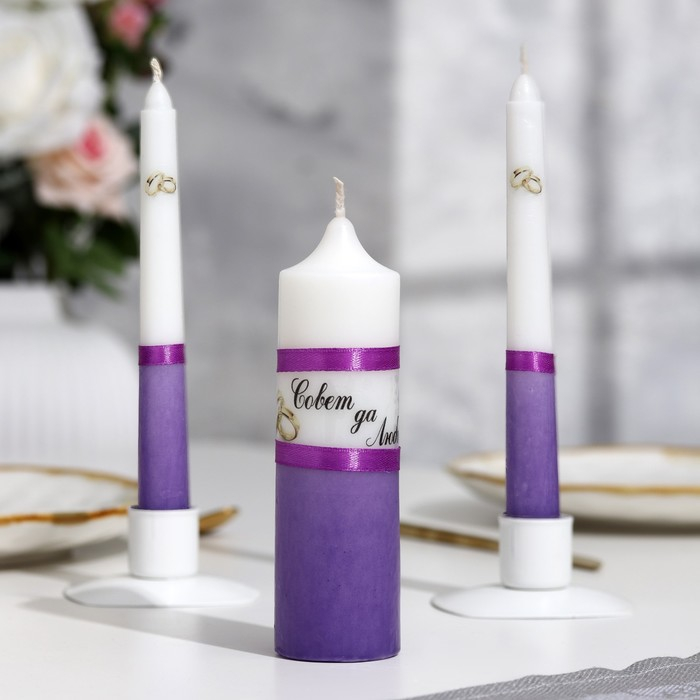 Набор свадебных свечей "Совет да любовь" фиолетовый: родительские 1,8х17,5; очаг 4х13,5