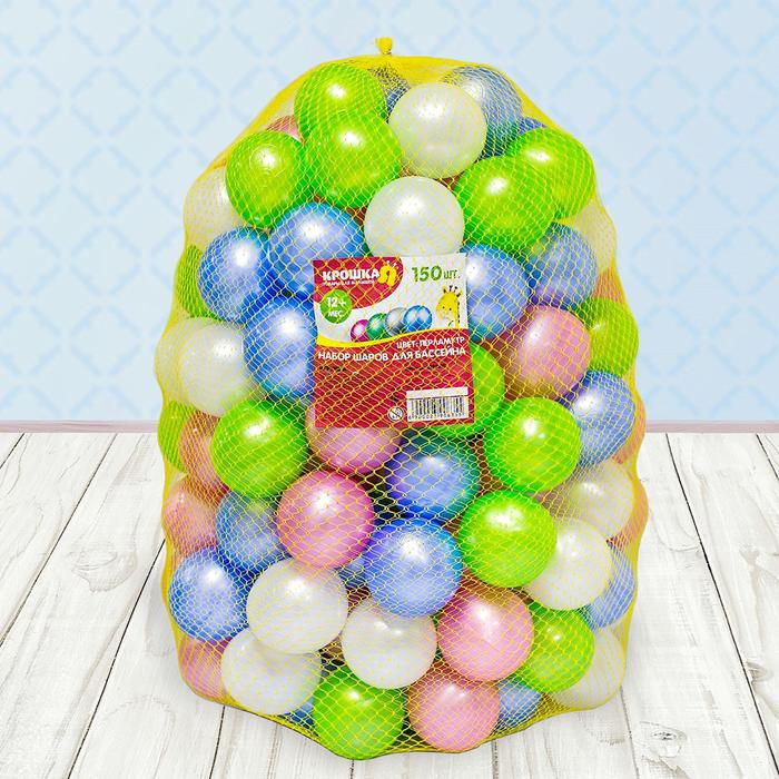 Шарики для сухого бассейна «Перламутровые», диаметр шара 7,5 см, набор 150 штук, цвет розовый, голубой, белый, зелёный