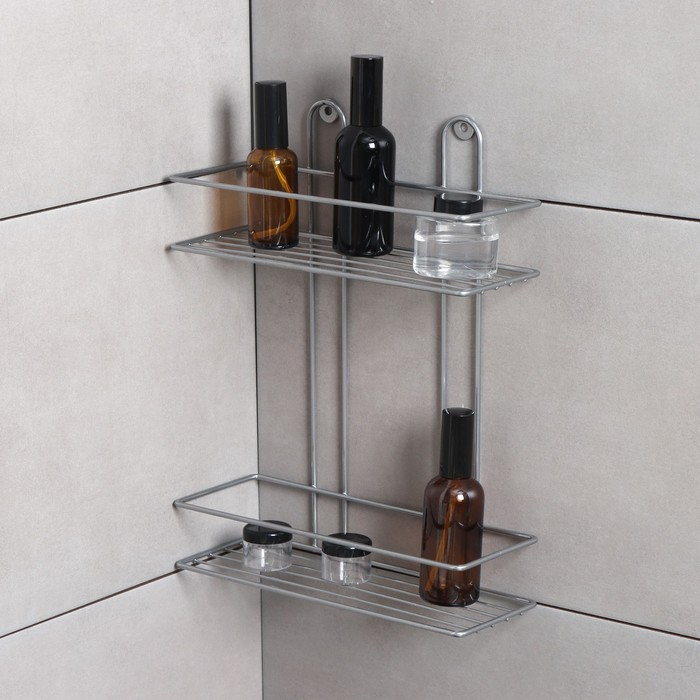Полка прямоугольная 2-х ярусная, 26.5×10.5×35 см, цвет хром