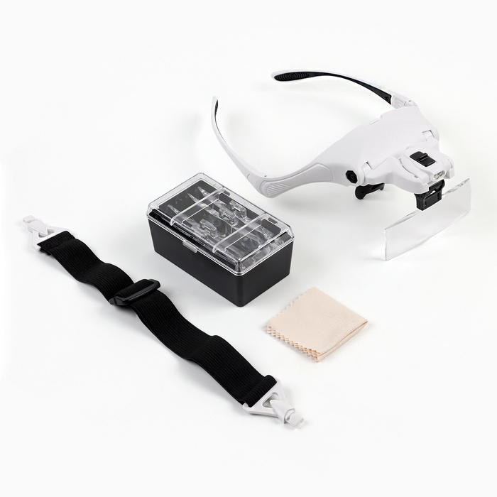 Лупа налобная 1-3.5х бинокулярная, с подсветкой, 5 линз в комплекте, 3 ААА