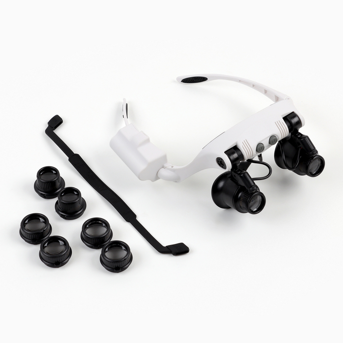 Лупа налобная 10-25х бинокулярная, с подсветкой, 6 линз в комплекте, 3 ААА