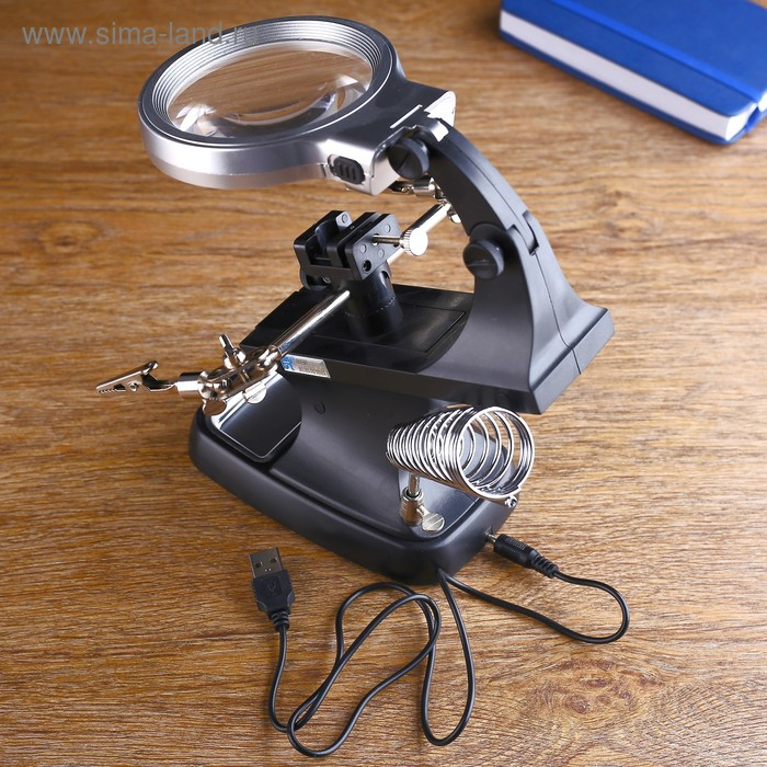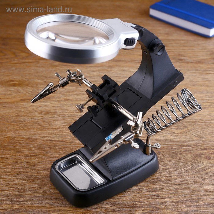 Третья рука для пайки 2,5х, 5х, с подсветкой, 20*21*15 см, 3ААА,