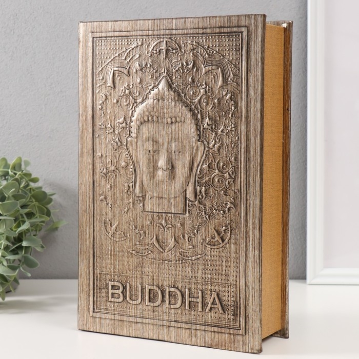Сейф-книга дерево кожзам "Голова будды" тиснение, под металл 30х20х6,8 см