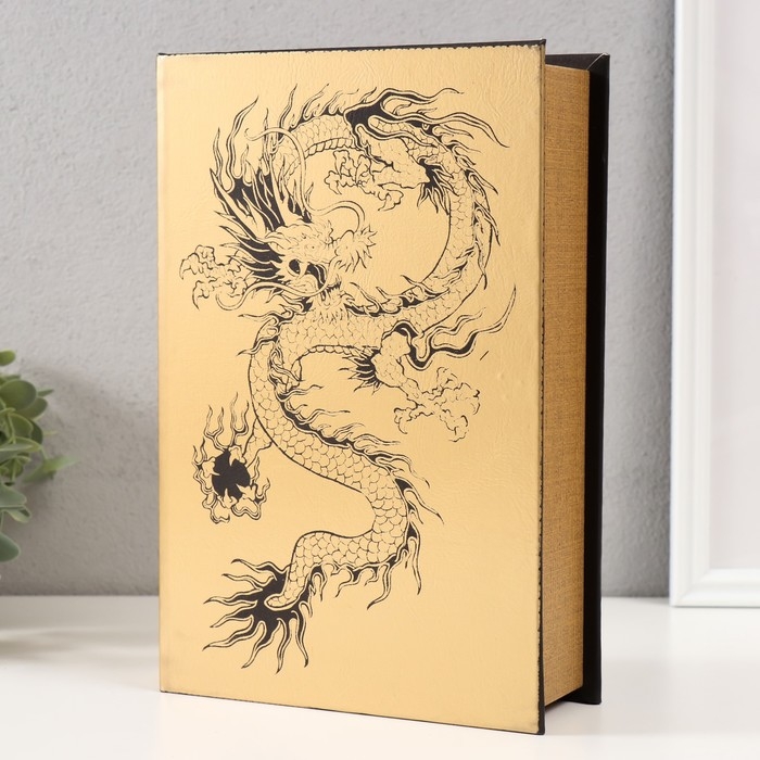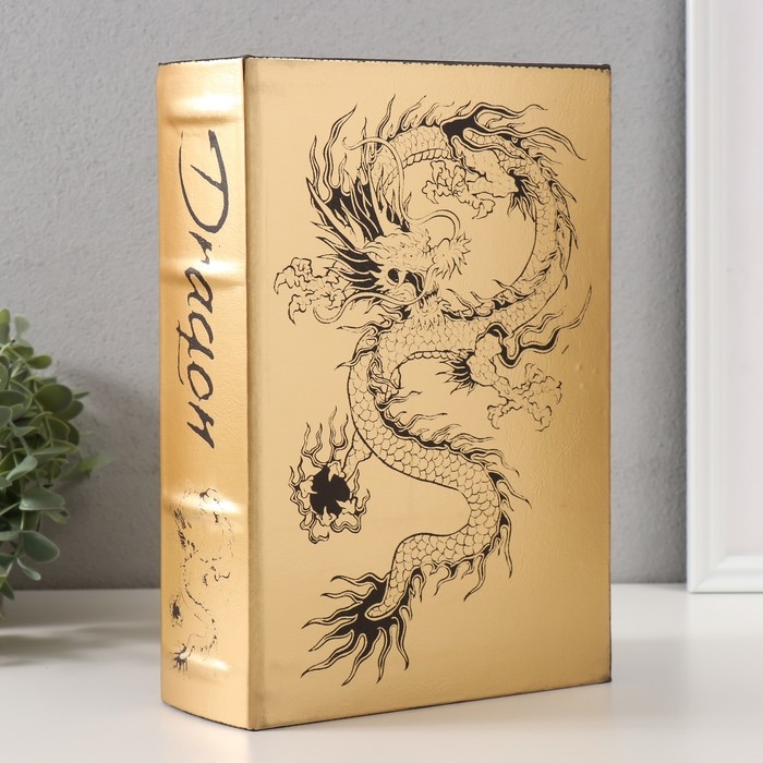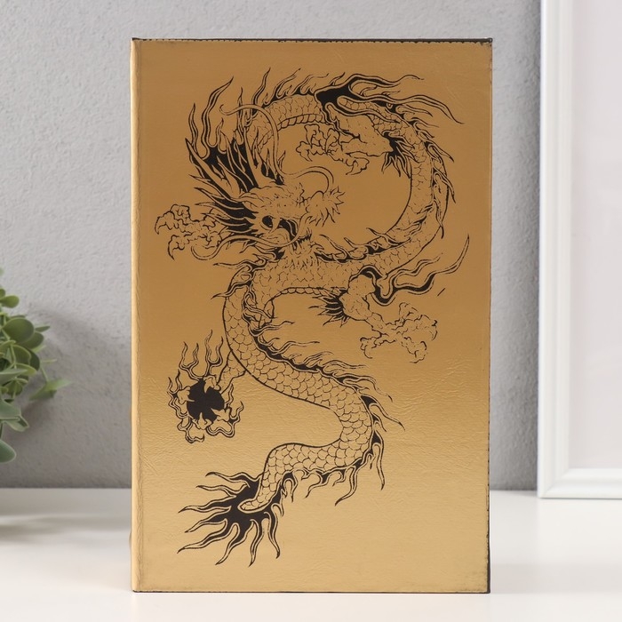 Сейф-книга дерево кожзам "Китайский дракон" тиснение, под металл, золото 27х18х7 см