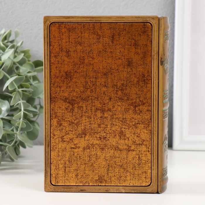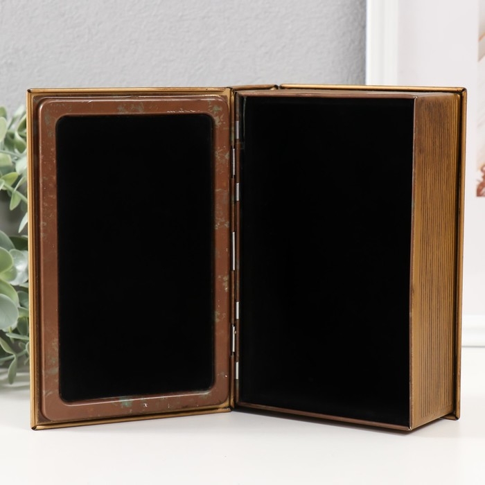 Шкатулка-книга металл, кожзам "Корабль в океане" с зеркалом 17х12х5 см