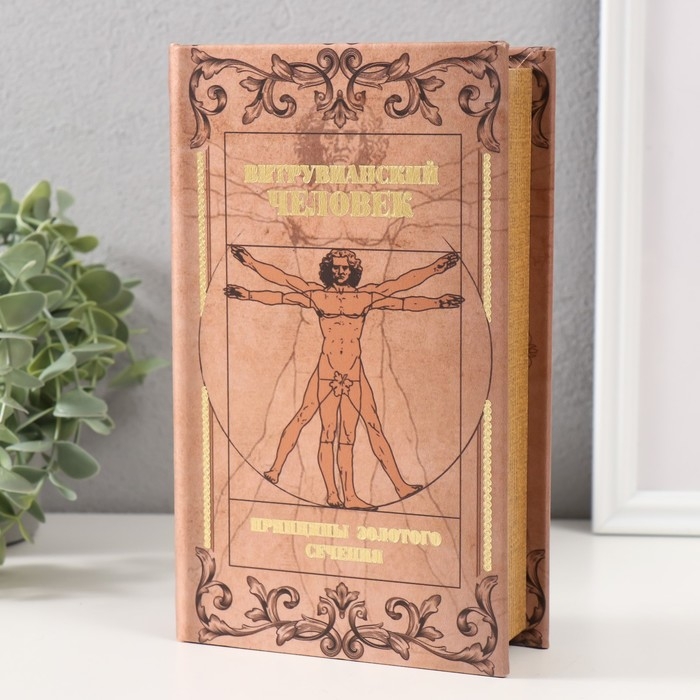Сейф-книга дерево кожзам "Витрувианский человек" тиснение 21х13х5 см