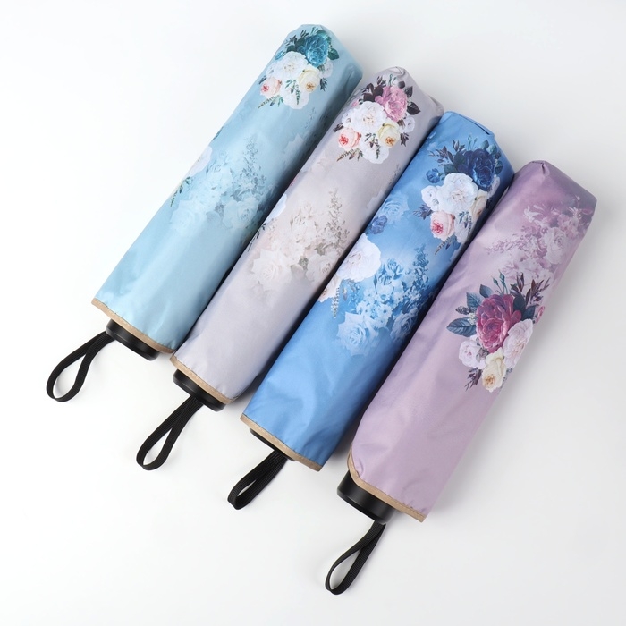 Зонт механический «Цветочный букет», эпонж, 4 сложения, 8 спиц, R = 48/56 см, D = 112 см, цвет МИКС