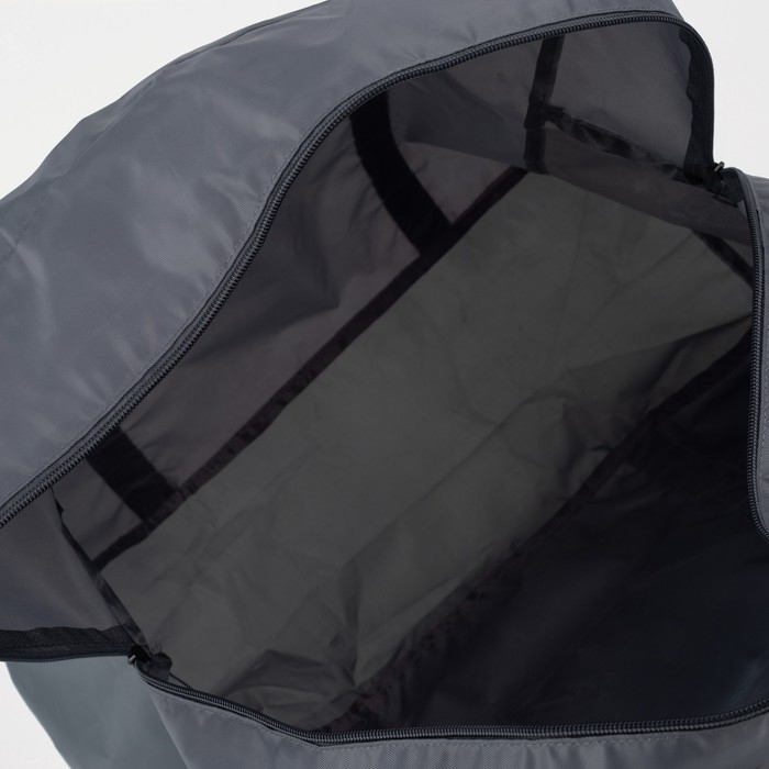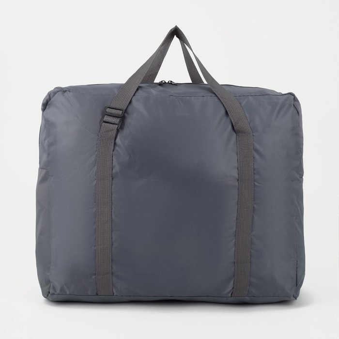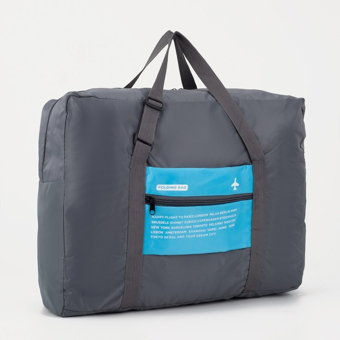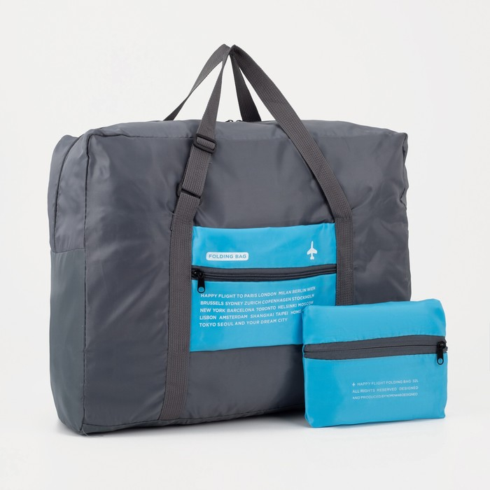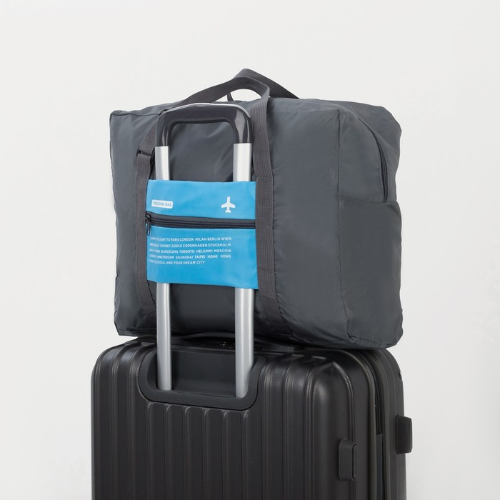 Сумка дорожная на молнии, складная в косметичку, наружный карман, держатель для чемодана, цвет серый/голубой