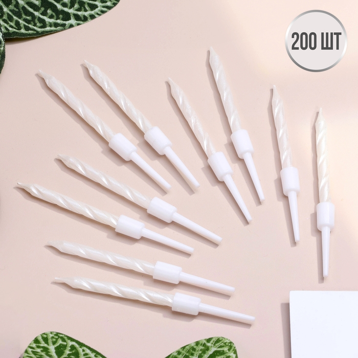 Набор свечи в торт "Спираль", 200шт, 5 см, жемчужный