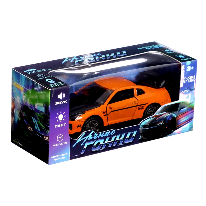 Машина металлическая «Ночные гонки», инерцинная, 1:32, открываются двери, звуковые и световые эффекты, цвет оранжевый