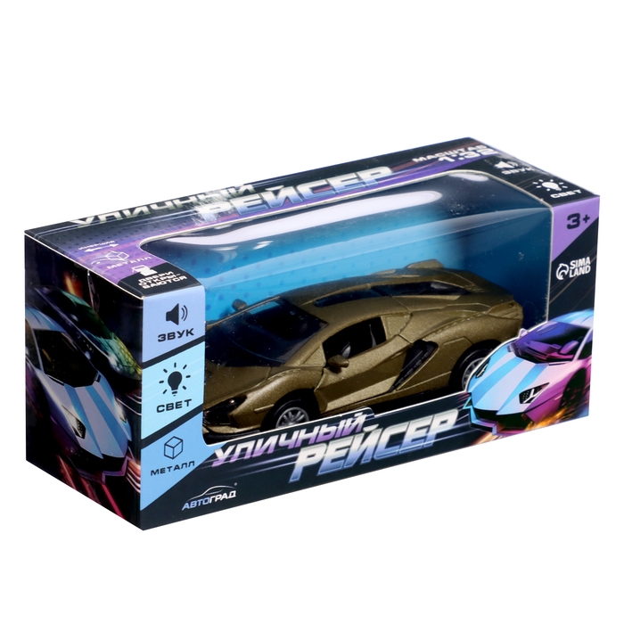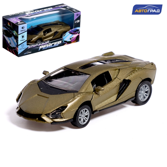 Машина металлическая «Уличный рейсер», инерционная, 1:32, открываются двери, звуковые и световые эффекты, цвет зелёный