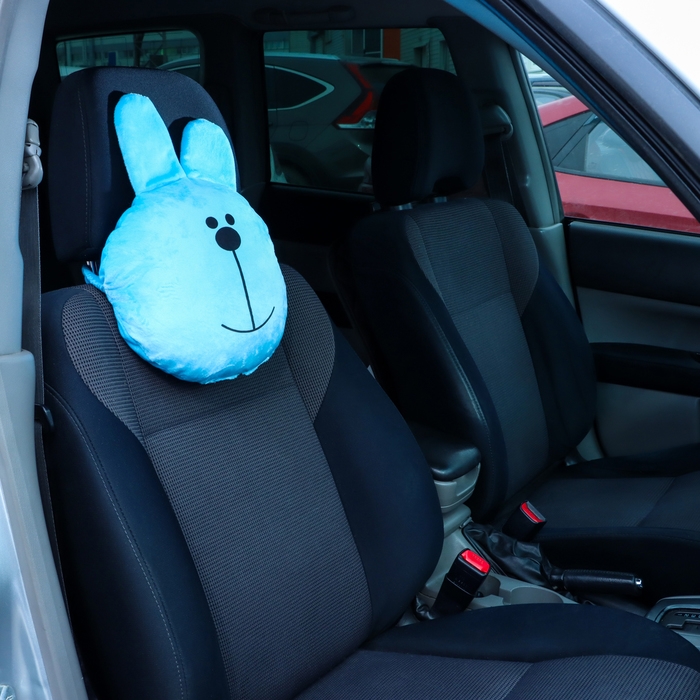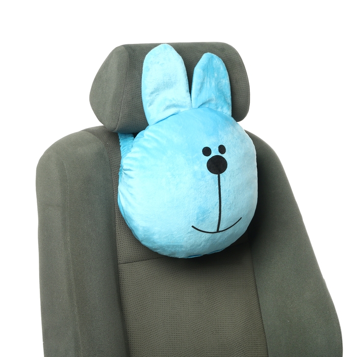 Подушка на подголовник в виде зайчика - это забавный и функциональный аксессуар для автомобиля. Размеры подушки составляют 33x31x10 см, а крепится она на резинке к подголовнику сиденья.