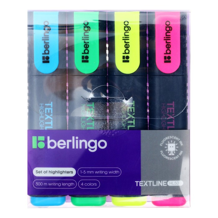 Набор маркеров-текстовыделителей 4 цвета, Berlingo 5.0 мм, европодвес
