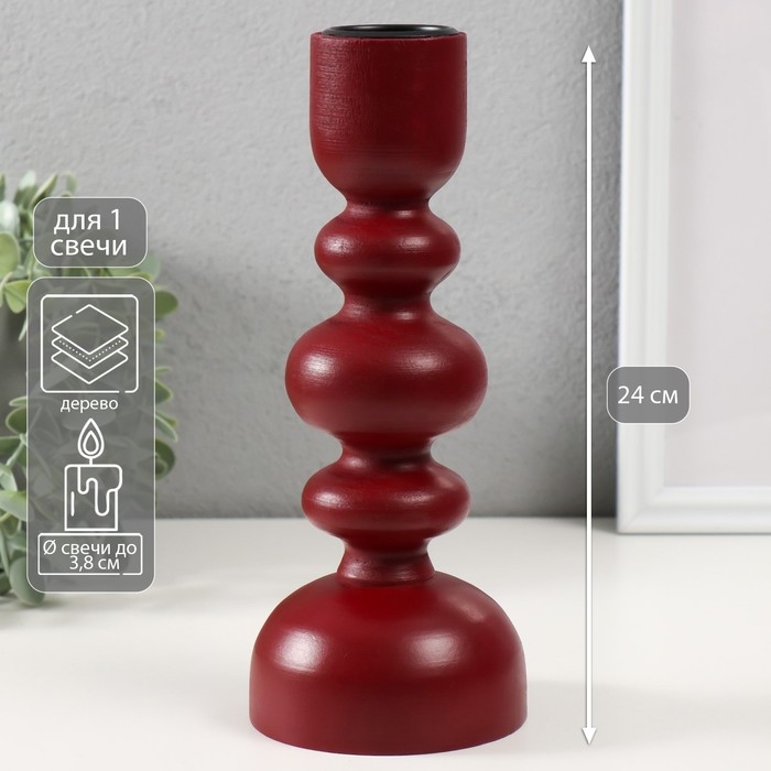 Подсвечник дерево на 1 свечу "Эллипсы" бордо 9,8х9,8х24 см