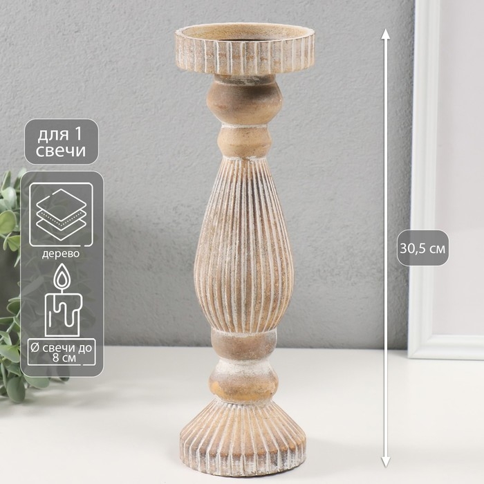 Подсвечник дерево на 1 свечу "Гофре" состаренный 9,7х9,7х30,5 см