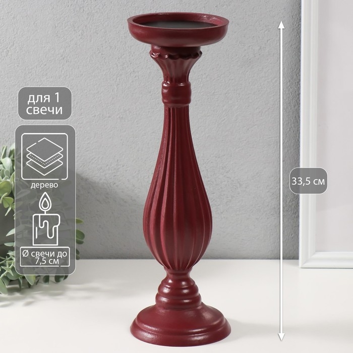 Подсвечник дерево на 1 свечу "Элегант" бордо состаренный 12,5х12,5х33,5 см