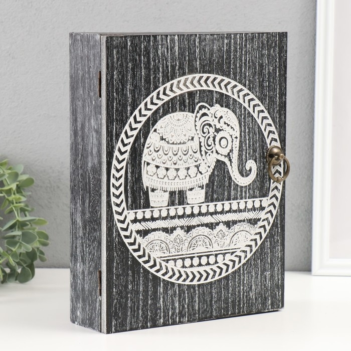 Ключница дерево 6 крючков "Индийский слон" 22х7,2х29 см