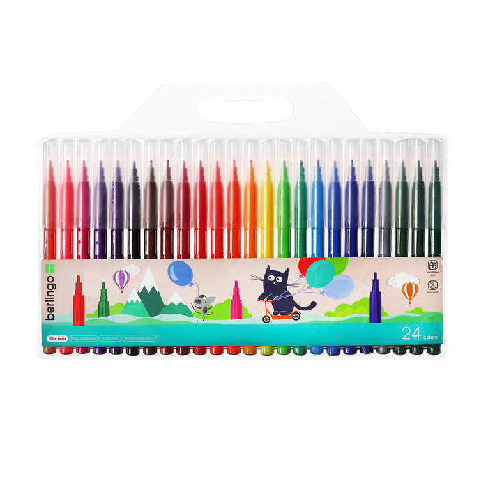 Фломастеры смываемые 24 цвета "Жил-был кот", европодвес