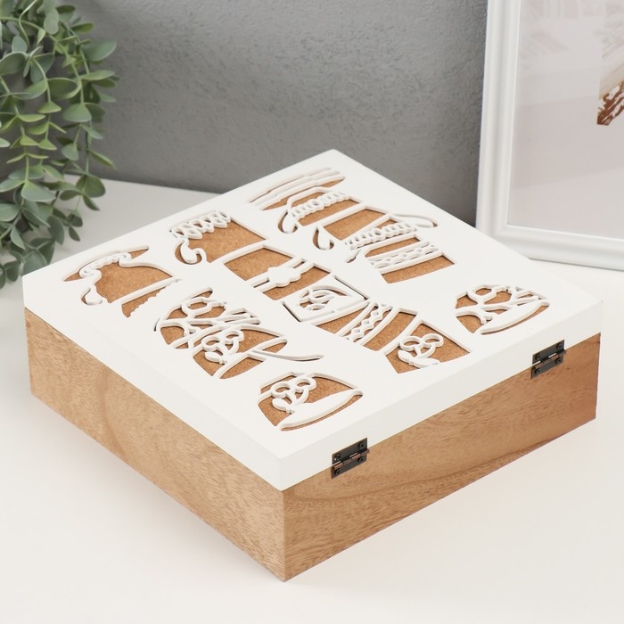 Шкатулка дерево с делениями "Коллекция чашек" 23,3х23,3х8 см
