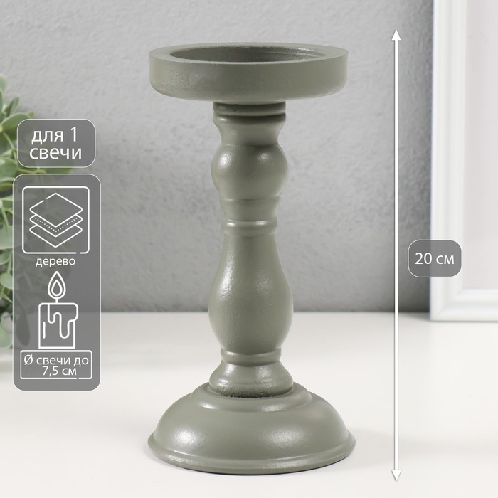 Подсвечник дерево на 1 свечу "Оскар" серый 20х10,3х10,3 см