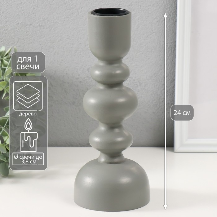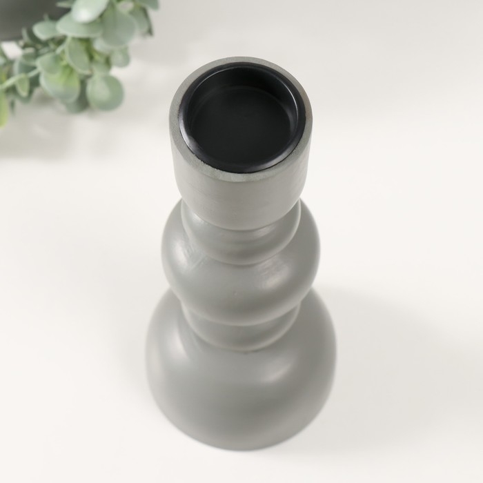 Подсвечник дерево на 1 свечу "Эллипсы" серый 9,8х9,8х24 см