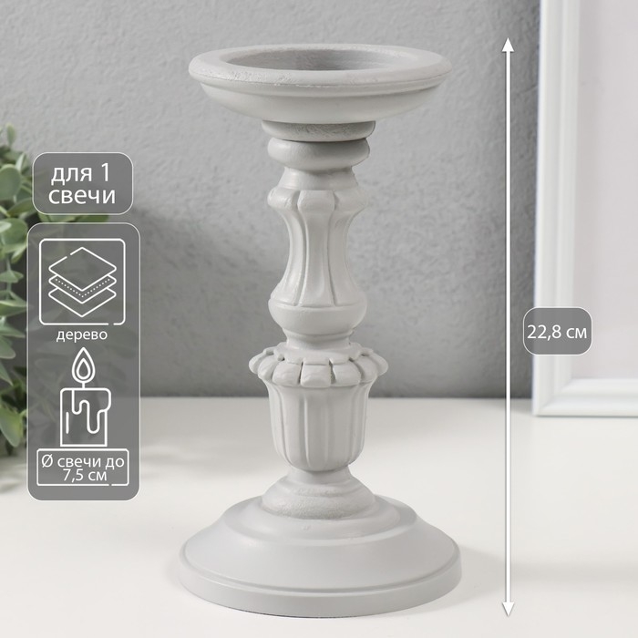 Подсвечник дерево на 1 свечу "Версаль" светло-серый 12,5х12,5х22,8 см