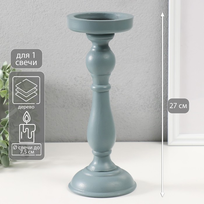 Подсвечник дерево на 1 свечу "Талия" серо-сиреневый 10х10х27 см
