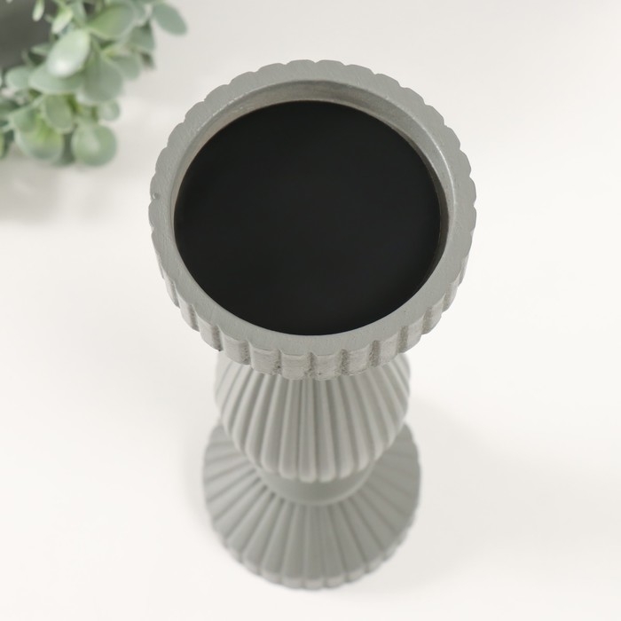 Подсвечник дерево на 1 свечу "Гофре" серый 9,7х9,7х27 см