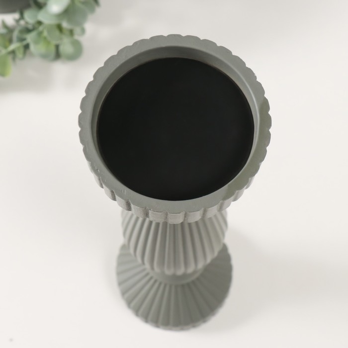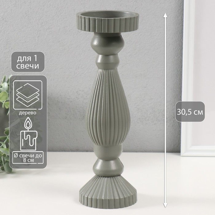 Подсвечник дерево на 1 свечу "Гофре" серый 9,7х9,7х30,5 см