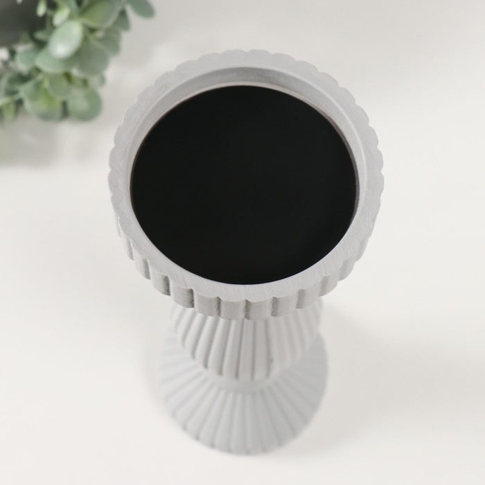 Подсвечник дерево на 1 свечу "Гофре" светло-серый 9,7х9,7х30,5 см