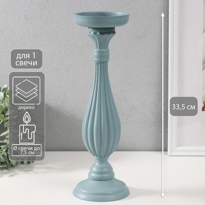 Подсвечник дерево на 1 свечу "Элегант" небесный 12,5х12,5х33,5 см