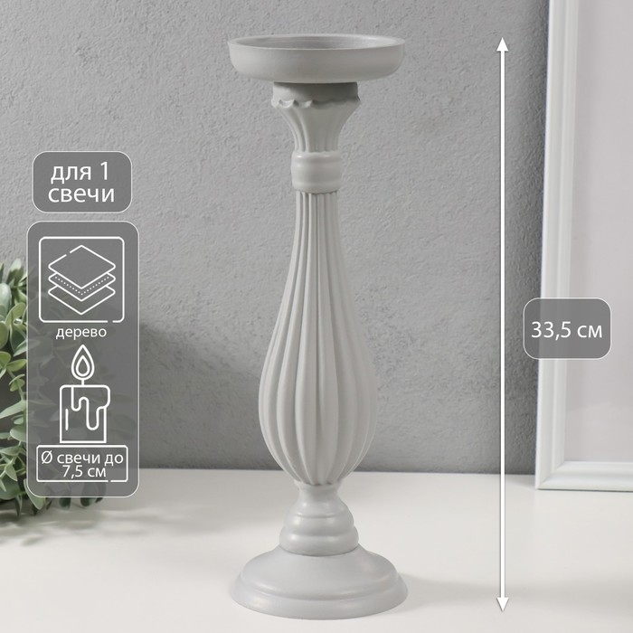 Подсвечник дерево на 1 свечу "Элегант" светло-серый 12,5х12,5х33,5 см