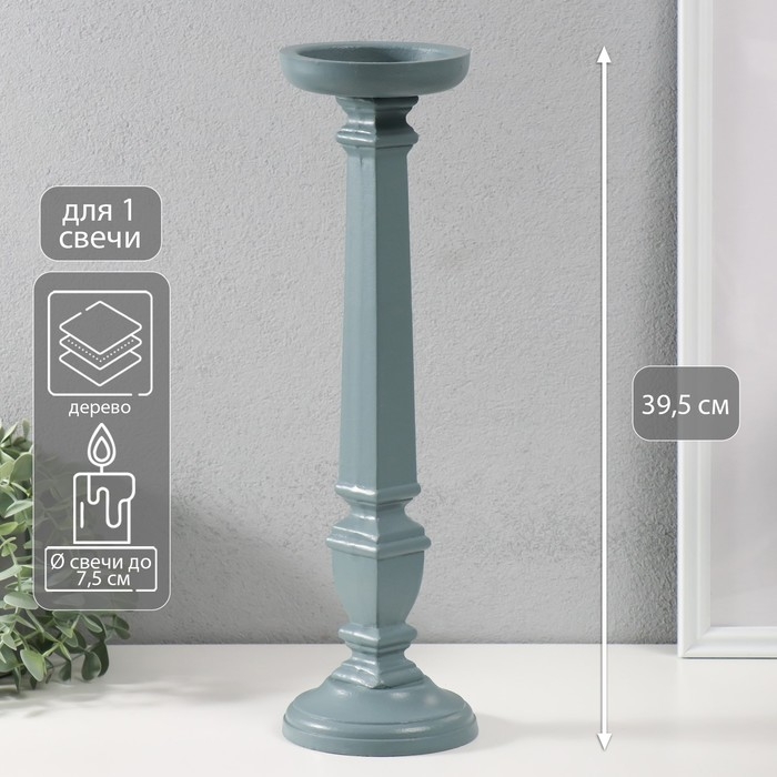Подсвечник дерево на 1 свечу "Греция" серо-сиреневый 11,5х11,5х39,5 см