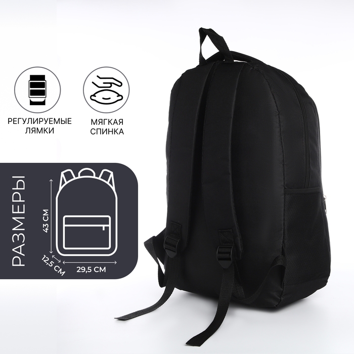 Рюкзак школьный из текстиля на молнии, 4 кармана, цвет чёрный