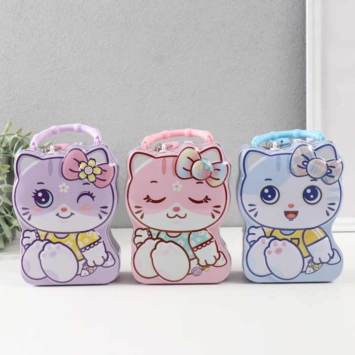 Копилка металл с замочком "Милая кошечка" МИКС 7х12х16 см