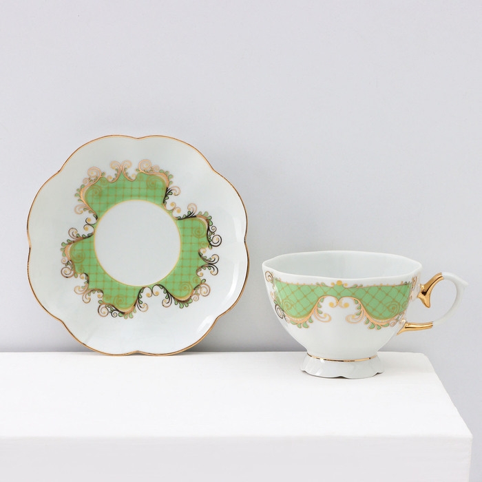 Сервиз фарфоровый чайный Доляна «Вивьен», 12 предметов: 6 чашек 200 мл, 6 блюдец d=15 см, цвет серый